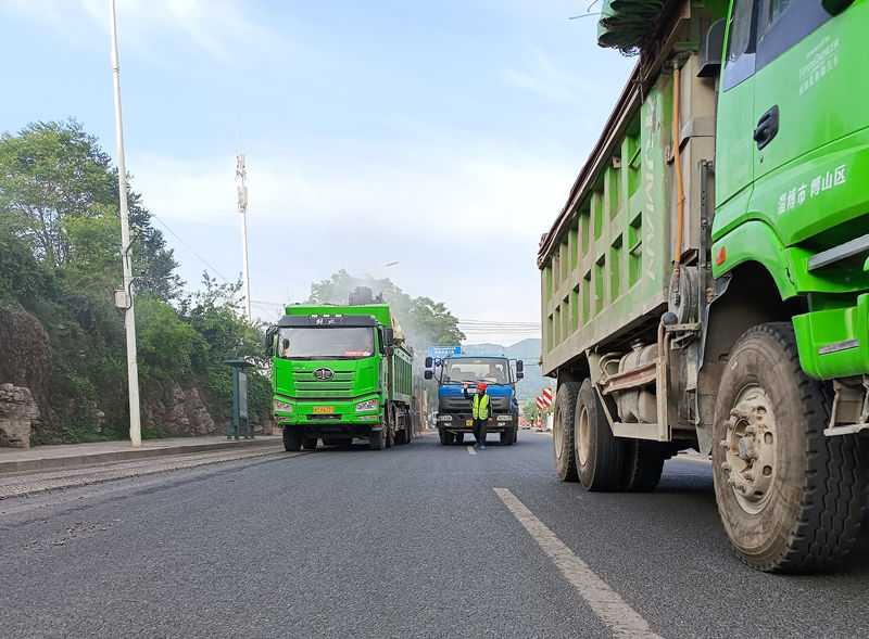 由于G205山深線全線交通壓力大的段落主要集中在博山穿城區(qū)部分,我部接到施工任務(wù)后,迅速與博山公路中心、博山交警大隊(duì)對(duì)G205博山境內(nèi)每一處路口封閉情況進(jìn)行了實(shí)地勘察,優(yōu)化交通組織,在泉王路口、博山北立交口、焦莊路口分別設(shè)置導(dǎo)流點(diǎn),進(jìn)行提前分流車輛,經(jīng)過為期兩天的大型車輛分流提示,穿城區(qū)大型車輛明顯減少。