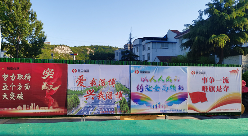 走在G205中修項目沿線,綠色擋板上漂漂亮亮地掛著各式宣傳圖,為半幅施工帶來的緊張車流融入了一道靚麗風(fēng)景線,不僅妝點了施工現(xiàn)場,緩解了過往司機的疲勞與焦慮,也向社會各界展示了我市蓬勃發(fā)展的交通文化。這批宣傳圖畫,由魯中公路自行設(shè)計、制作,旨在宣傳淄博嶄新的精神面貌,在行政管理部、第一工程公司、交安工程公司配合協(xié)作下,歷時3天,就完成了80幅宣傳圖從設(shè)計到制作安裝的整個過程。