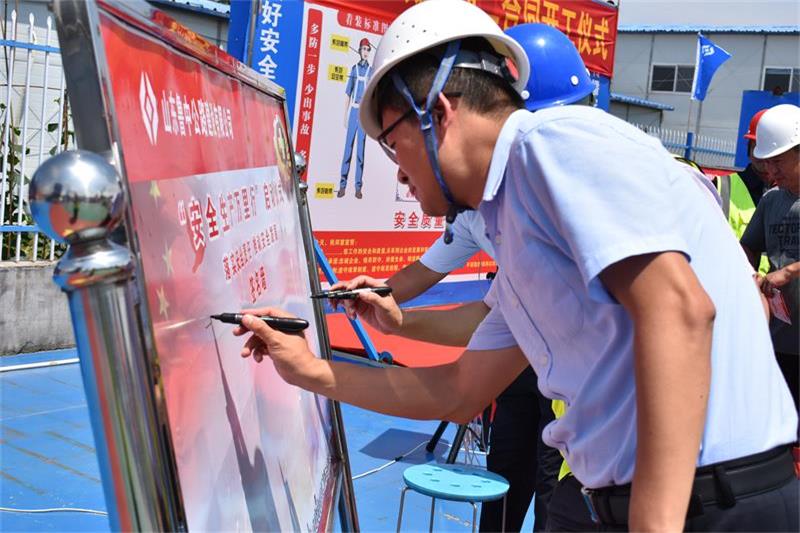 儀式開始,各隊(duì)伍整齊列隊(duì)。儀式上山東魯中公路建設(shè)有限公司第二工程公司經(jīng)理李眾作出發(fā)言:“能夠承建此項(xiàng)目,我們十分珍惜,并深感使命光榮、責(zé)任重大!我們?cè)谶@里聚力啟動(dòng)開工儀式暨‘安全生產(chǎn)萬里行’活動(dòng)儀式,就是為了能讓所有項(xiàng)目參建人員統(tǒng)一思想,端正認(rèn)識(shí),明確標(biāo)準(zhǔn),夯實(shí)責(zé)任,以飽滿的激情投入施工生產(chǎn),以鐵腕的內(nèi)控落實(shí)一崗雙責(zé),切實(shí)做到安全投入到位、教育培訓(xùn)到位、基礎(chǔ)管理到位、應(yīng)急救援到位,讓各級(jí)領(lǐng)導(dǎo)單位滿意,讓居民出行滿意!”
