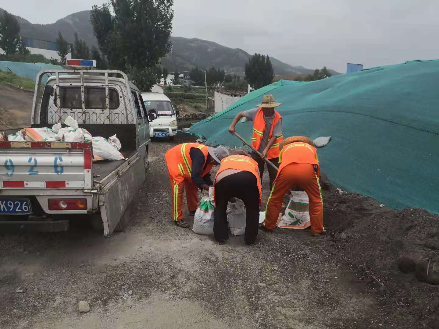 裝填防汛沙袋