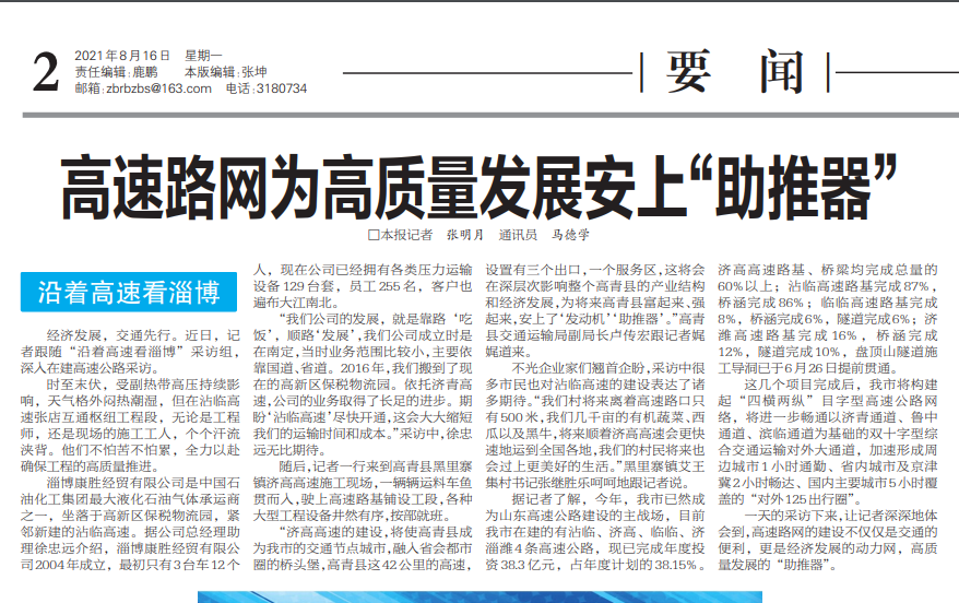 經(jīng)濟發(fā)展,交通先行。近日,記者跟隨“沿著高速看淄博”采訪組,深入在建高速公路采訪。