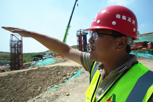 8月3日,臨臨高速二標(biāo)段一分部項(xiàng)目經(jīng)理劉敏向記者介紹施工進(jìn)展。