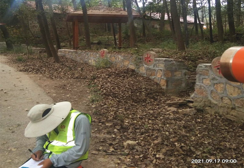 自臨臨高速中標進場后,前期與設(shè)計院進行現(xiàn)場交點后,后期導線點、水準點的加密復測工作也在緊張有序的進行。項目地形高低起伏較大、溝渠河流較多,附近百姓都以種植果樹為主,這也給加密復測工作帶來了不小的挑戰(zhàn),但是這些攔不住我們測量先行隊前進的腳步。因為大部分的點位處于山腰或者林地附近,所以經(jīng)常會在某個山坡或者某片林地里發(fā)現(xiàn)測量隊的身影。同事們也會打趣的說這里的景色一點不比專業(yè)驢友選擇的線路景色差,而且都還是沒有開發(fā)的原生態(tài)景色。景色雖美,但同事們?yōu)榱吮M快完成復測工作,以早出晚歸,中午不歸的狀態(tài)運行。