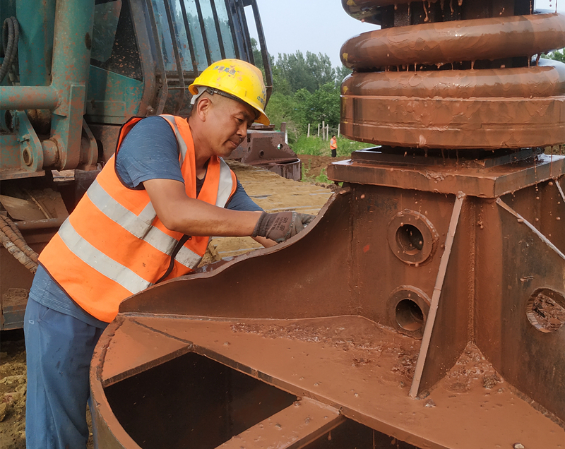 在晴空萬里中,在烈日炎炎下,在陰雨綿綿里,在皓月當空時,魯中公路橋涵施工現場始終矗立著一支“頂天立地”的隊伍——交安工程公司旋挖鉆施工隊。作為橋梁樁基施工的重型機械,旋挖鉆機組對橋梁質量和整體施工進度起著重要作用。舒展最高達28米,寬5.2米,重量18噸,最大鉆孔直徑2.5米,最大鉆孔深度96米,要駕馭這個龐然大物也非易事。從鉆孔開始,需要根據地質情況及時調整更換鉆頭;鉆齒磨損需及時提鉆更換,遇到特殊地質鉆齒更換更為頻繁。所有都是鐵家伙,全靠人工肩扛手抬和一臺裝載機來操作。灌樁一旦開始必須一氣呵成不容停頓,無論白天黑夜,干到幾點算幾點?,F場人員體力、精力消耗較大。