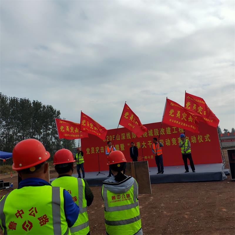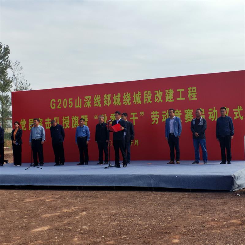 10月14日上午10:30,G205山深線郯城繞城段改建工程黨員突擊隊授旗暨“秋季大干”勞動競賽啟動儀式在施工現(xiàn)場隆重召開。出席授旗儀式的有市公路事業(yè)發(fā)展中心、郯城縣政府、縣直機關(guān)工委、郯城縣G205改建項目指揮部及沿線各標段。