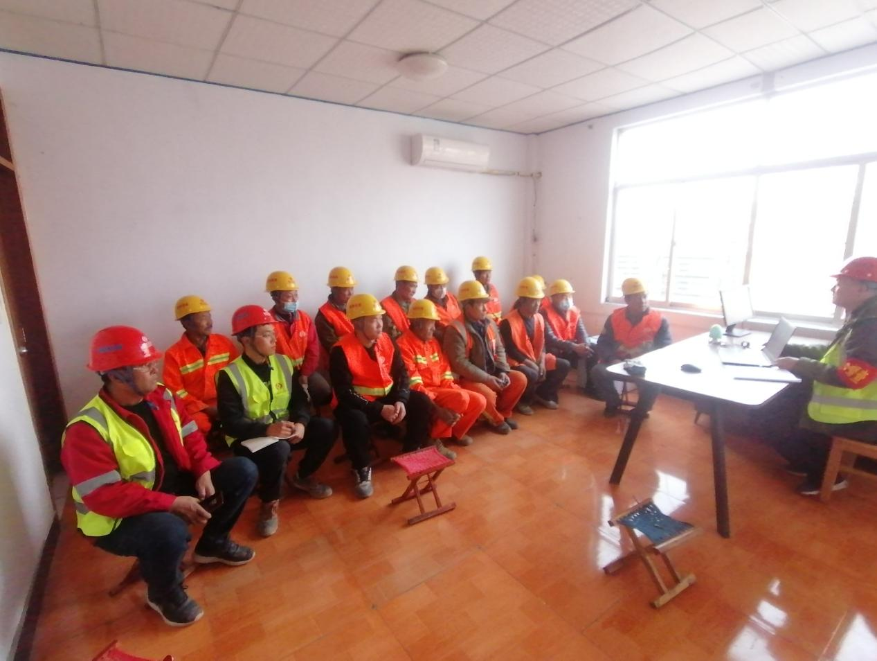 因三分部場站建設(shè)駐地距離項目部較遠(yuǎn),臨臨項目安全部攜帶電腦、投影儀、擴(kuò)音器等設(shè)備上門對新入場工人進(jìn)行入場安全教育培訓(xùn)。