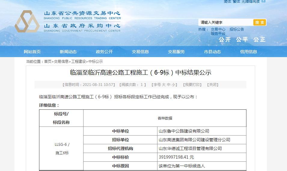 2021年8月31日,山東省公共資源交易中心發(fā)布了臨淄至臨沂高速公路工程施工(6-9標(biāo))中標(biāo)結(jié)果公示,魯中公路中標(biāo)施工6標(biāo)段。消息傳來(lái),公司上下一片沸騰,人人磨拳擦掌,爭(zhēng)相報(bào)名投入到臨臨建設(shè)中去。
