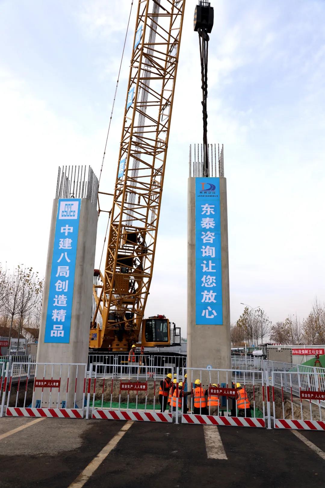 由淄博市城市資產(chǎn)運(yùn)營(yíng)有限公司投資建設(shè),山東東泰工程咨詢(xún)有限公司監(jiān)理的淄博市城市快速路網(wǎng)一期工程四標(biāo)段昌國(guó)路與寶山路互通立交項(xiàng)目首根預(yù)制裝配式立柱吊裝完成,項(xiàng)目建設(shè)正式邁入“預(yù)制拼裝”階段。