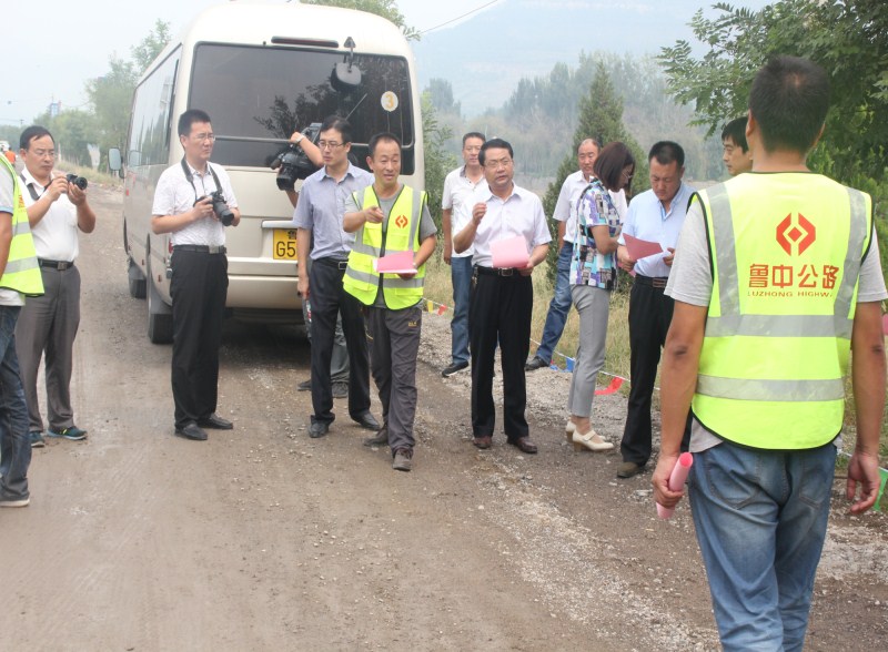 2016年9月6日,沂源縣人大、交通局等領(lǐng)導(dǎo)視察我養(yǎng)護(hù)分公司九東路工地,九東路項(xiàng)目經(jīng)理李眾、項(xiàng)目總工任衍峰陪同檢查。