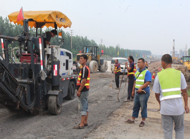 路總是從無到有,每天睜眼一看又有了新變化。路基團隊在道路初建之時,從沒白沒黑的清表、挖填、整平、攪拌、碾壓灑掃。待到石灰土層層驗收后就又匆匆奔向新的起點。這中間的愁、苦、辛、勞仿佛是在彈指一揮間而已。宋希偉帶領(lǐng)著郭碩、魏濤、趙洪岳、于景民、張曉文這些施工員每天轉(zhuǎn)戰(zhàn)在挖掘機、銑刨機、推土機、沖擊碾壓、液壓夯、壓路機、平地機、路拌機、運輸車和施工隊之間,抱著本子測量、打點、放線、統(tǒng)計、開報表.....每天從早5點到后半夜連軸轉(zhuǎn),辦公室輕易見不到人,電話一打往往是正在通話中,有事找他們最好的辦法就是到工地到現(xiàn)場,一準能找到一臉嚴肅的宋希偉,咧著嘴似笑似不笑的郭碩,一本正經(jīng)正在指揮施工的趙洪岳,整天嘻嘻哈哈的于景民和看著與年紀不符的張曉文,張嘴就是:“黃主任有水嗎,我水都喝光了。”再就是:“有事嗎?沒事我忙去啦。”