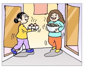 互送有無,鄰居就像親人一樣。因?yàn)椴荒艹鲂^(qū)的門,小區(qū)里面誰家缺少發(fā)面的酵母、做蛋糕的蛋糕胚、小寶寶的紙尿褲,在小區(qū)群里說一聲,接著就有好鄰居給送到。昨天收到兩個(gè)鄰居相繼送來的黃花魚、大蝦仁、扇貝丁,說是給孩子吃,這個(gè)時(shí)候的關(guān)心,一下子就鉆到心里,暖到心里。