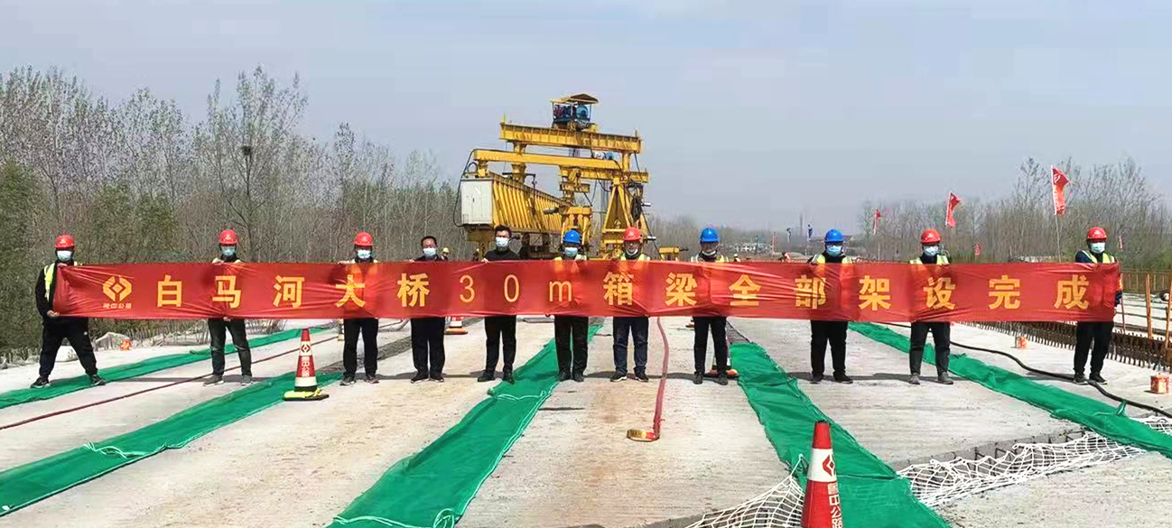 2022年4月4日,隨著白馬河大橋右幅1-2箱梁平穩(wěn)架設在支座上,郯城G205項目白馬河大橋箱梁全部架設完成,現(xiàn)場鞭炮齊鳴、一派火熱,郯城縣公路中心、總監(jiān)辦領導紛紛到場祝賀。