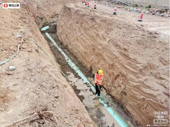 污水工程:A0+200-A0+342段完成142m,倒虹吸檢查井基礎完成2座。