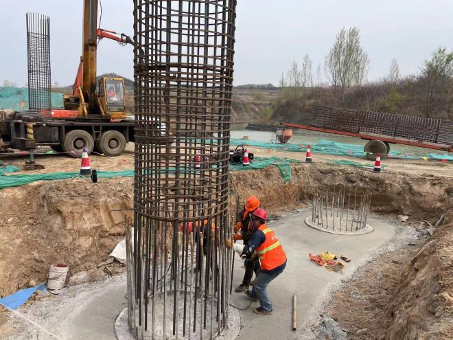 橋梁工程:橋梁墩柱鋼筋安裝4根、系梁澆筑砼完成2座。