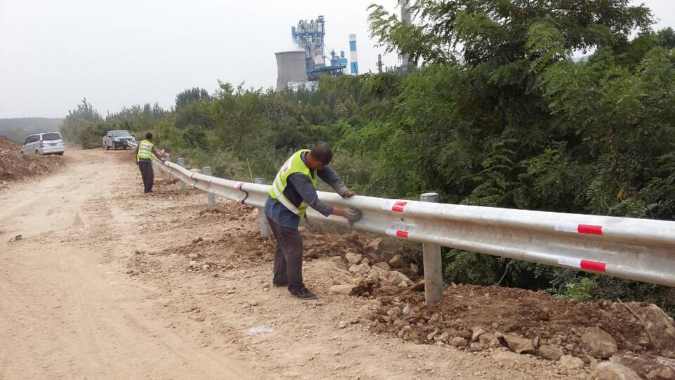 基礎(chǔ)分公司S102路基三分部工人安裝防撞護(hù)欄
