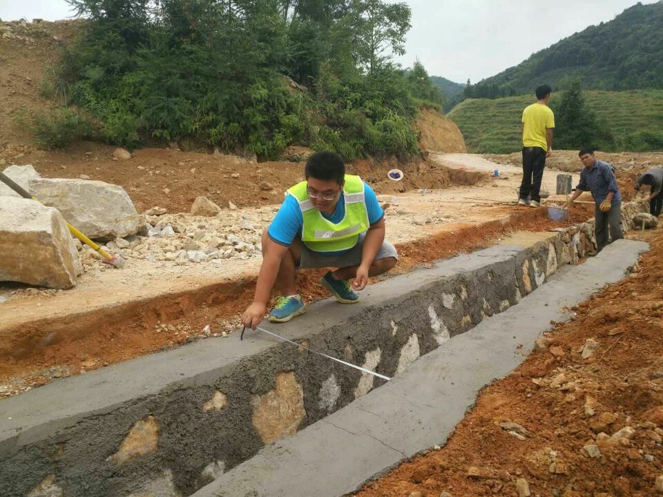 基礎(chǔ)分公司江西項(xiàng)目部質(zhì)檢員劉光財(cái)現(xiàn)場檢查排水溝尺寸