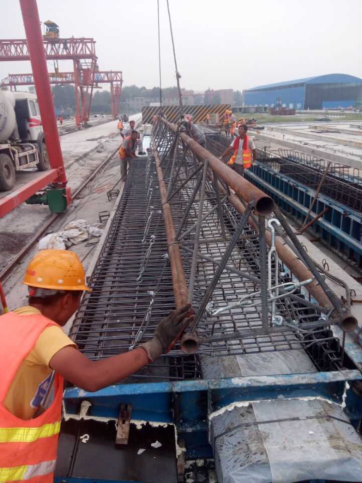 橋隧分公司張店梁場先張空心板頂板鋼筋安裝現(xiàn)場