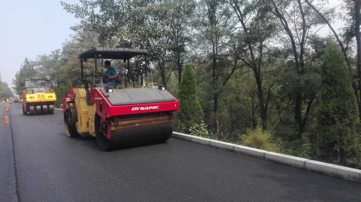 路面分公司S342嵐?jié)€瀝青面層碾壓施工現(xiàn)場