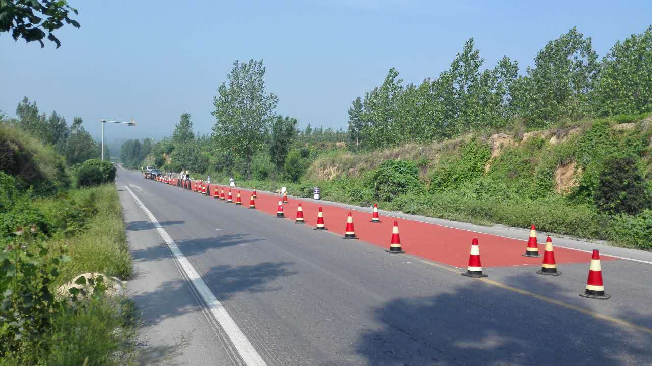 養(yǎng)護(hù)分公司沂水交安項(xiàng)目路面彩色鋪裝現(xiàn)場