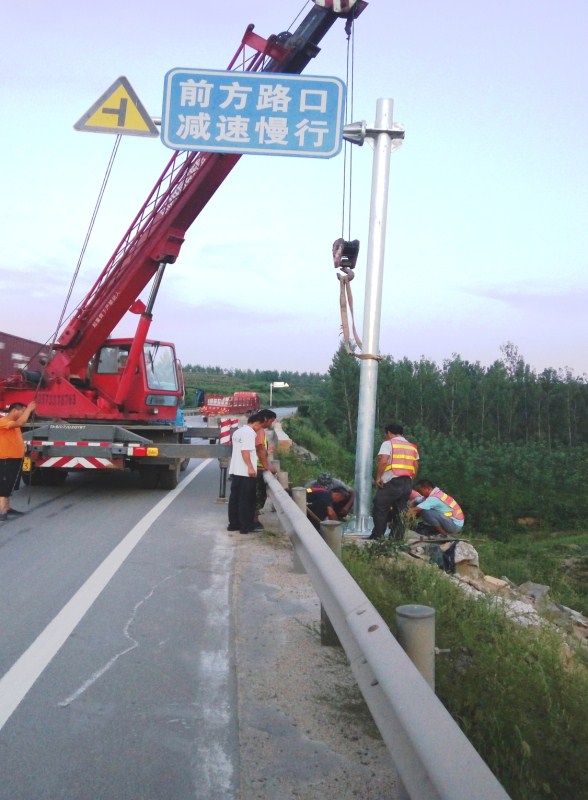 養(yǎng)護(hù)分公司煙臺(tái)交安項(xiàng)目標(biāo)志牌安裝現(xiàn)場