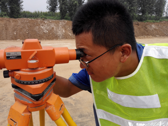 雖然臉上已滿是汗珠,但目光依然堅(jiān)定的測(cè)量員魏濤。