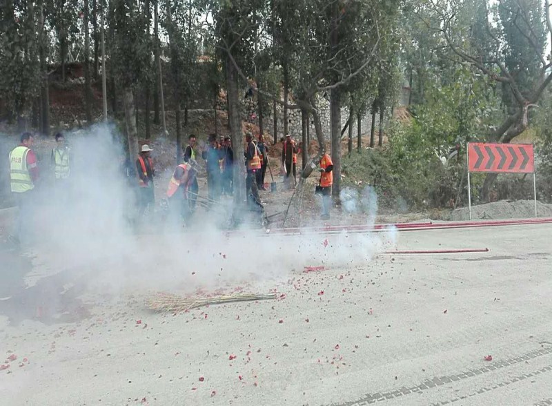 施工人員每天凌晨三點(diǎn)多就去工地,工作到很晚才收工。為保證如期完工,施工人員常常每天休息時(shí)間不足5小時(shí),即使在中秋佳節(jié)和家人團(tuán)聚的節(jié)日里,施工員也放棄休假,堅(jiān)守在工作崗位。各部門(mén)和員工積極響應(yīng)項(xiàng)目部“搶工期、趕進(jìn)度”的號(hào)召,瀝青施工隊(duì)伍分成兩個(gè)隊(duì)伍,晚上進(jìn)行下面層施工,白天進(jìn)行上面層施工。只要天氣允許,加班加點(diǎn)施工,從不浪費(fèi)一點(diǎn)施工時(shí)間,保證施工及時(shí)有效的銜接,進(jìn)而確保工程順利完工。