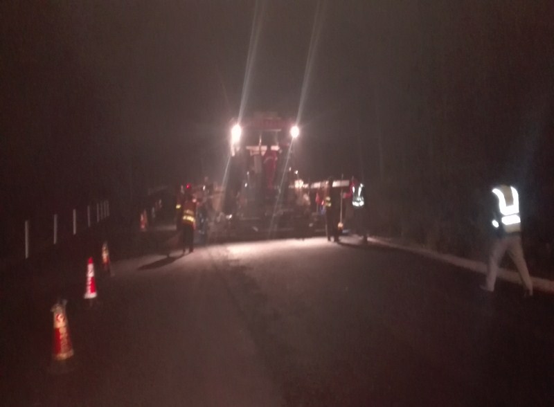 10月6號(hào)凌晨3點(diǎn)正在進(jìn)行上面層攤鋪