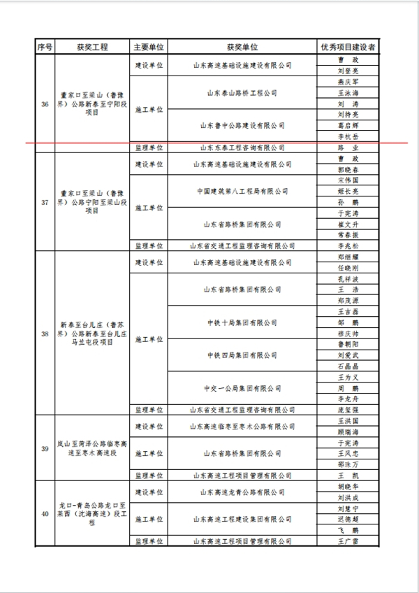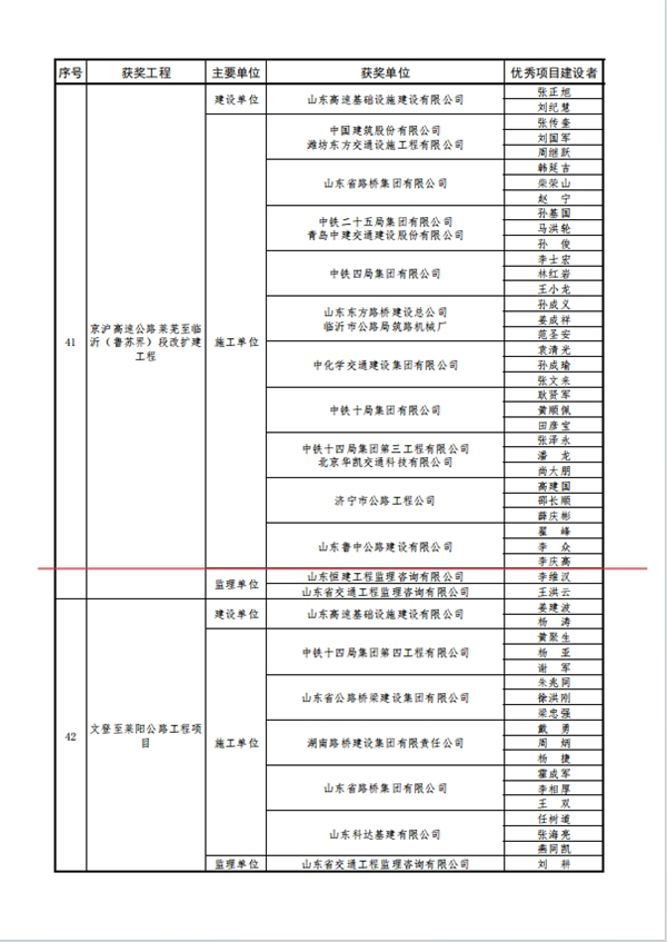 近日,中國公路建設(shè)行業(yè)協(xié)會發(fā)布2022-2023年度公路交通優(yōu)質(zhì)工程獎獲獎名單,公司承建的京滬高速公路萊蕪至臨沂(魯蘇界)段改擴(kuò)建工程十標(biāo)段、董家口至梁山(魯豫界)公路新泰至寧陽段項目二標(biāo)段喜獲此項殊榮。