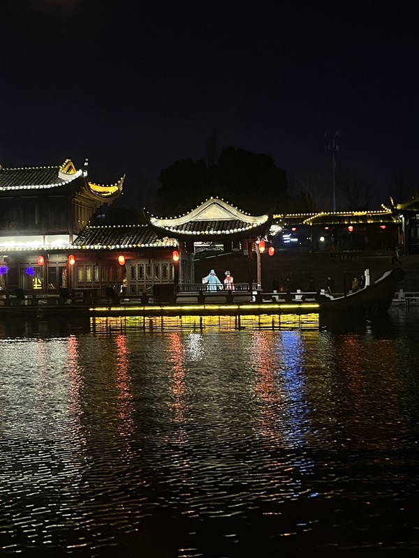 都說(shuō)泰州是“水天堂、夜游城”,漫步完獨(dú)具風(fēng)情的泰州老街,團(tuán)隊(duì)一行夜游鳳城河。鳳城河始鑿于宋寶慶二年,隨著畫(huà)舫輕撫波光水色,兩岸美景在霓虹映襯中更顯妖嬈,岸邊戲臺(tái)京劇演員翩翩起舞,月下是婆娑樹(shù)影、亭臺(tái)墨色,與嘈雜喧鬧若即若離,恍若夢(mèng)境一般。