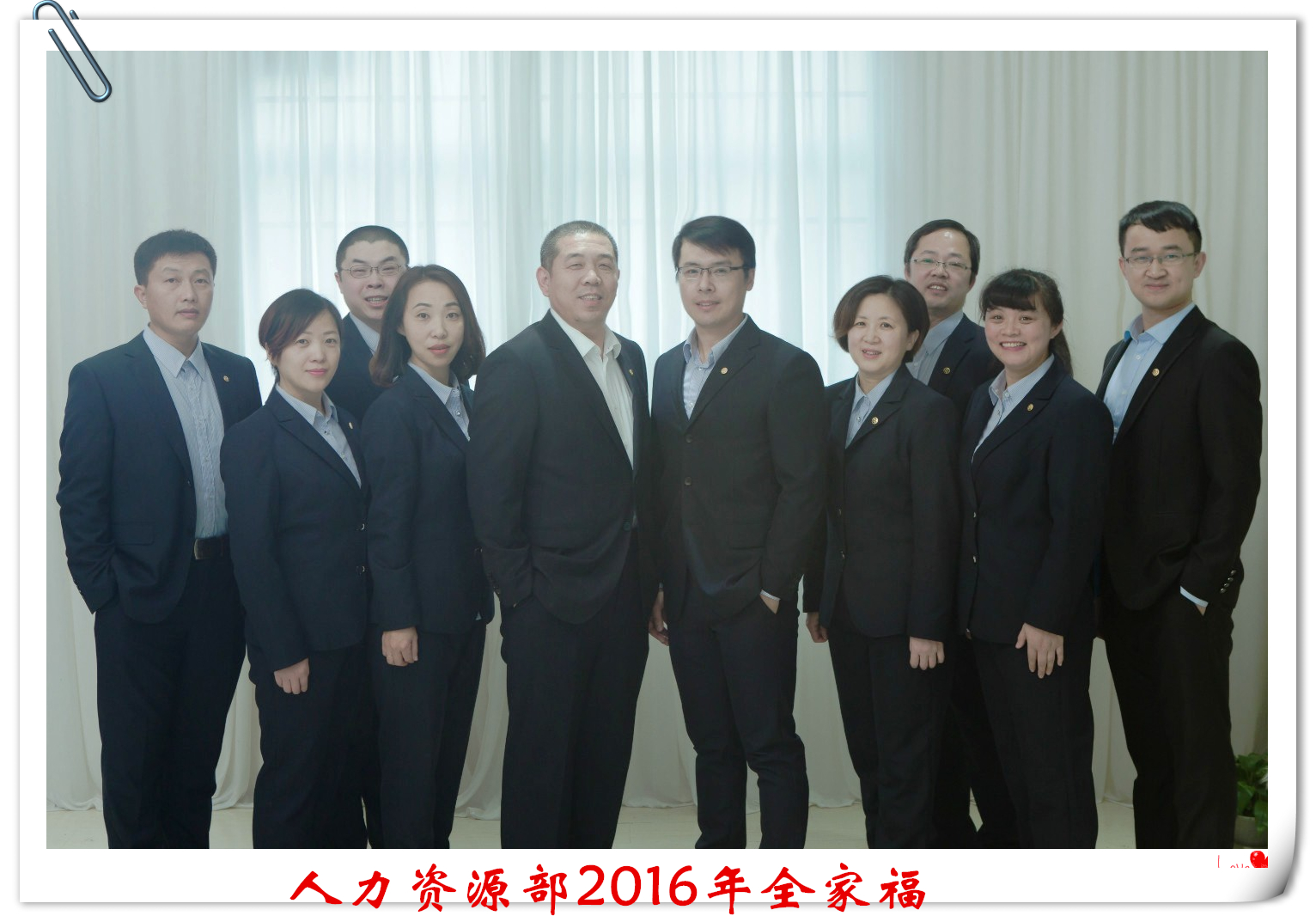單絲不成線,獨(dú)木不成林,家和才能萬(wàn)事興。人資部是我們的小家,魯中公路是我們的大家。當(dāng)攝影鏡頭對(duì)準(zhǔn)我們,拍下這張幸福的全家福的瞬間,我們笑了,發(fā)自內(nèi)心的笑了;我們驕傲,我們驕傲現(xiàn)在擁有的這一切;我們幸福,我們更愿意通過(guò)努力把這份幸福無(wú)限的延長(zhǎng)。嶄新的一年就要來(lái)臨了,我們每個(gè)人心中都充滿了期待,來(lái)時(shí)的路我們相扶相伴,未來(lái)的路我們?nèi)詴?huì)牽手相行,我們相信,在2017年的工作中,我們?nèi)肆Y源部將會(huì)一如既往的團(tuán)結(jié)向前,進(jìn)一步解放思路,放開(kāi)手腳,更加靈活、高效、自動(dòng)的去做好每一項(xiàng)工作。家和萬(wàn)事興,心齊泰山移,2017,人資部加油!2017,魯中公路更上一層樓!